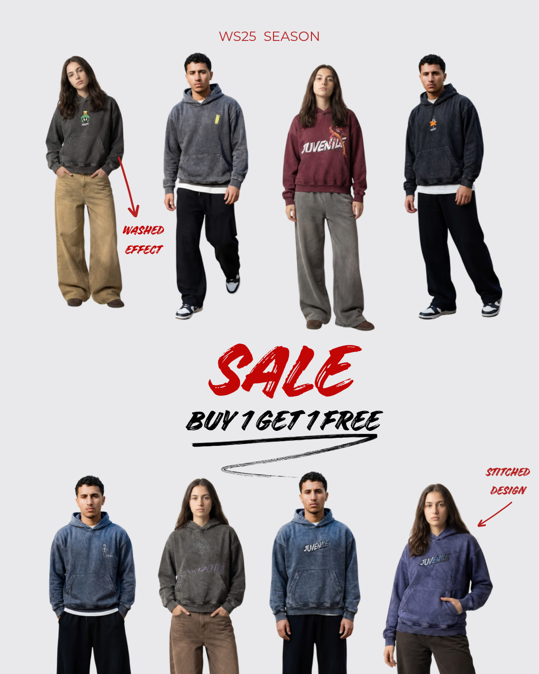 Shades of grey | Boxy fit acid washed grey embroidered hoodie JUVENILE